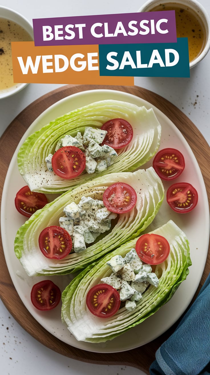 The secret to a perfect wedge salad is temperature. Iceberg lettuce should be refrigerated for at least 1 hour before slicing — this ensures each bite is crisp and refreshing.