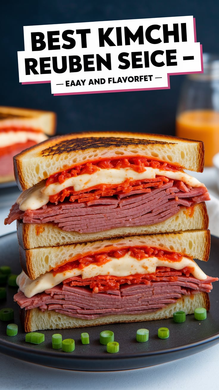 “Crispy, melty, tangy perfection in every bite — meet the Kimchi Reuben that redefines comfort food! 🥪🔥 #FusionFood #EasyRecipes #KimchiReuben”