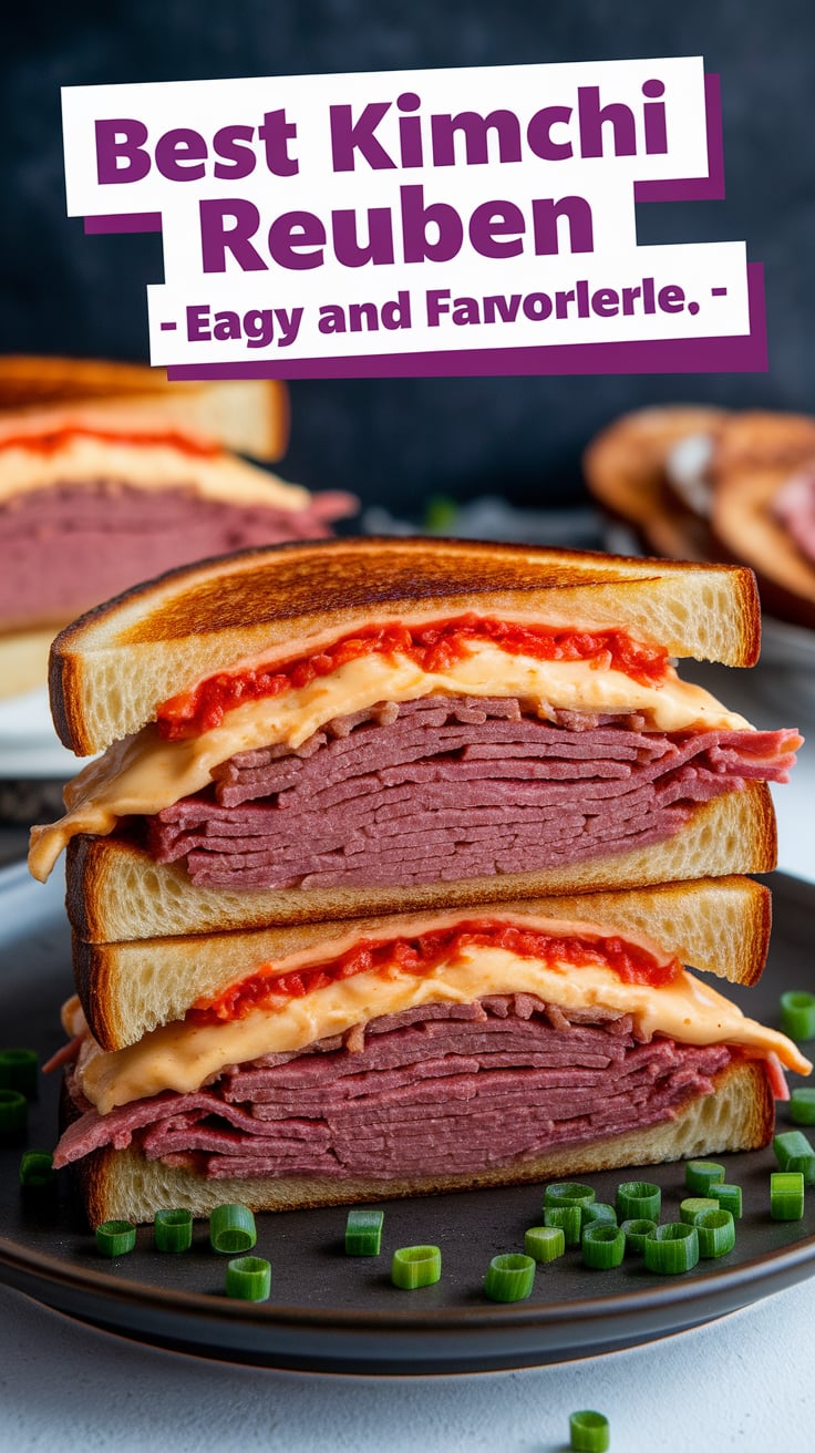 If you’re sharing on social media or Pinterest, stack your sandwich halves slightly apart, showing the layers of corned beef, kimchi, and cheese. Use natural lighting and a simple white or wooden background — the red-orange hue of kimchi pops beautifully against neutral tones.