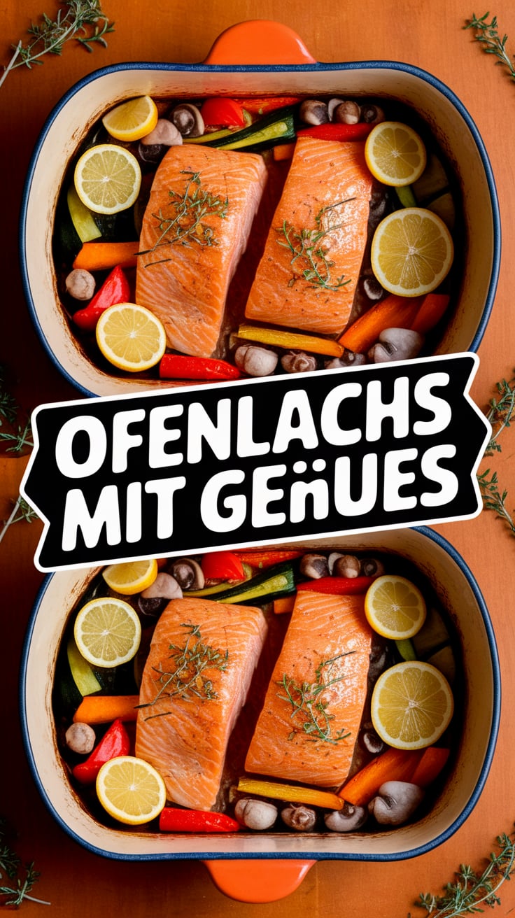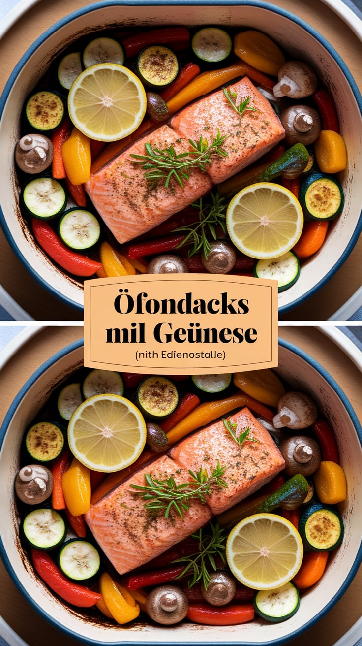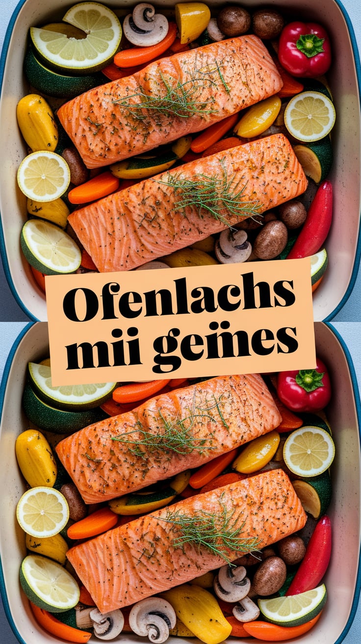 Stick to the traditional Ofenlachs mit Gemüse approach — fresh vegetables, olive oil, herbs, and lemon — clean, simple, and wholesome.